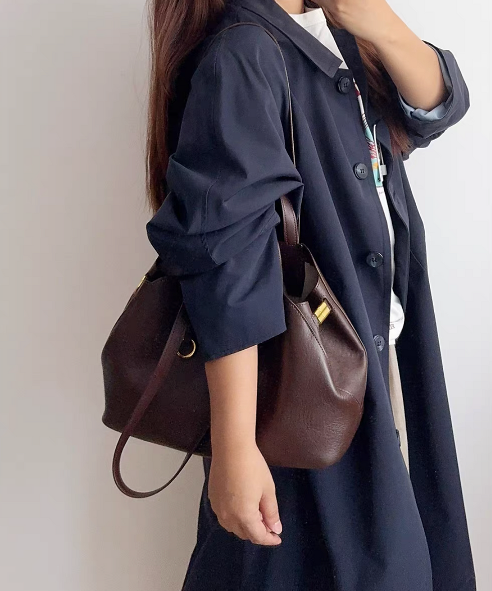 Docking calf leather tweed fabric dumpling shoulder + handle tote bag