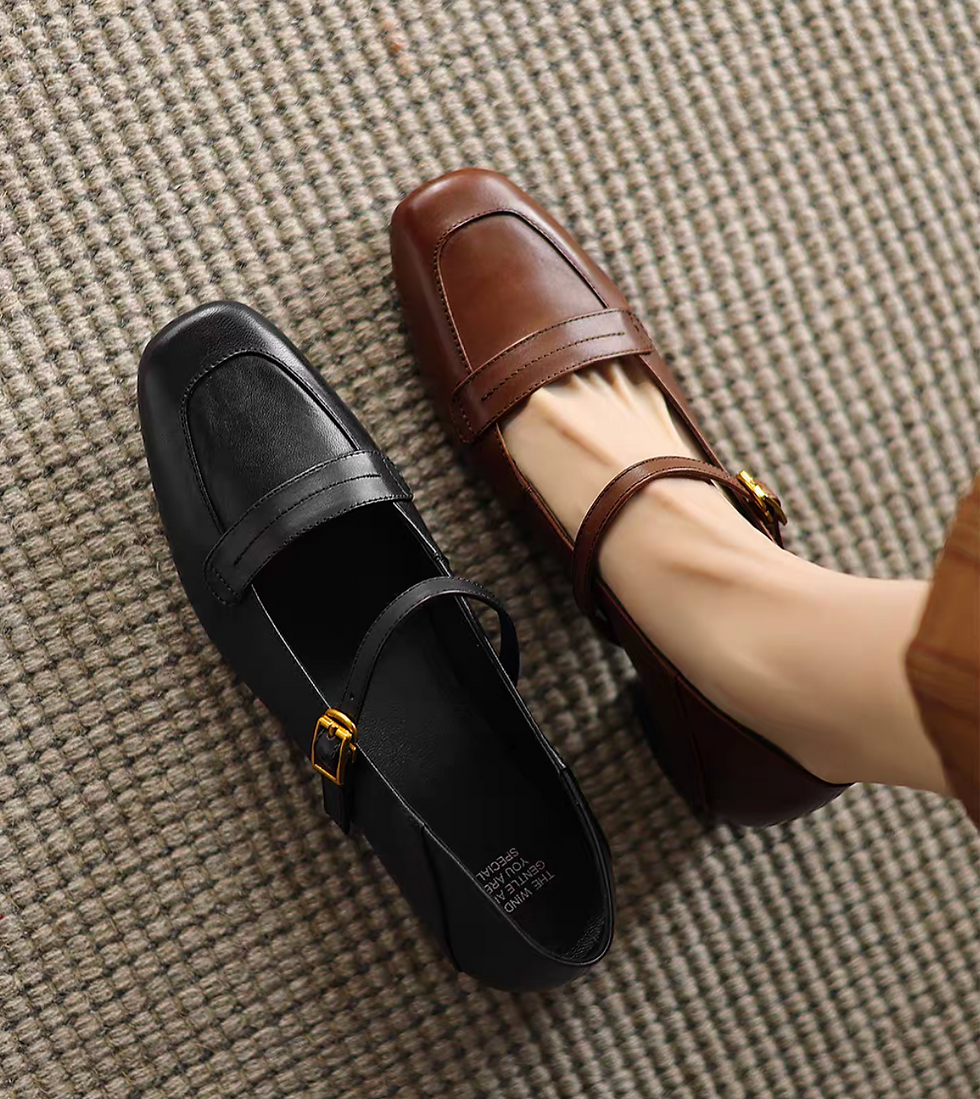 Double thin straps pointy calf leather Mary Janes